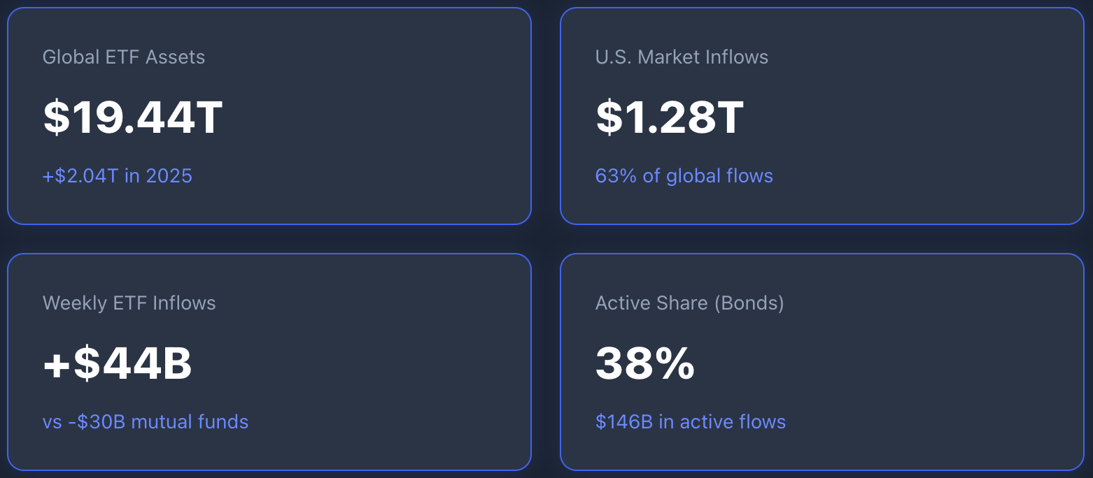 As we know, global ETF assets hit $19.44 trillion by November 2025.