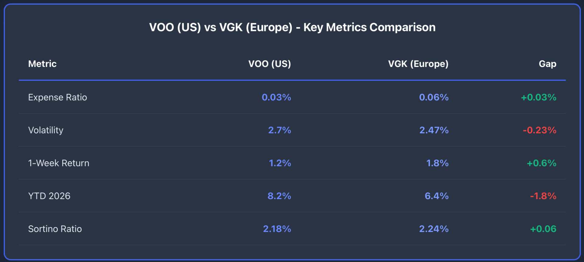 VGK shows lower volatility (2.47% vs 2.70%)