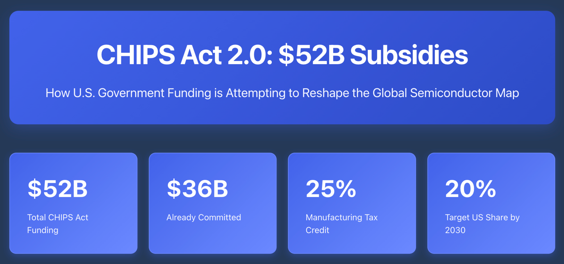 Since 2022, over $36 billion in CHIPS Act funding has been committed to companies like Intel, TSMC, and Samsung. Another $16 billion sits ready to deploy.