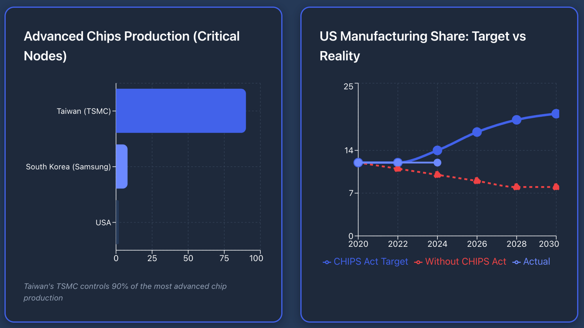 The stated goal? Bring semiconductor manufacturing back to American soil and reduce dependence on Taiwan and South Korea.