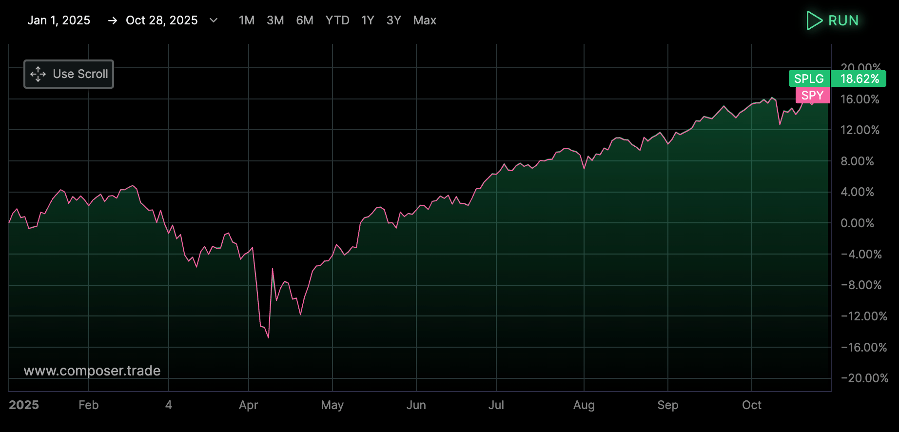 When you stack SPLG against VOO (Vanguard's S&P 500 ETF at 0.03%), the difference seems tiny.