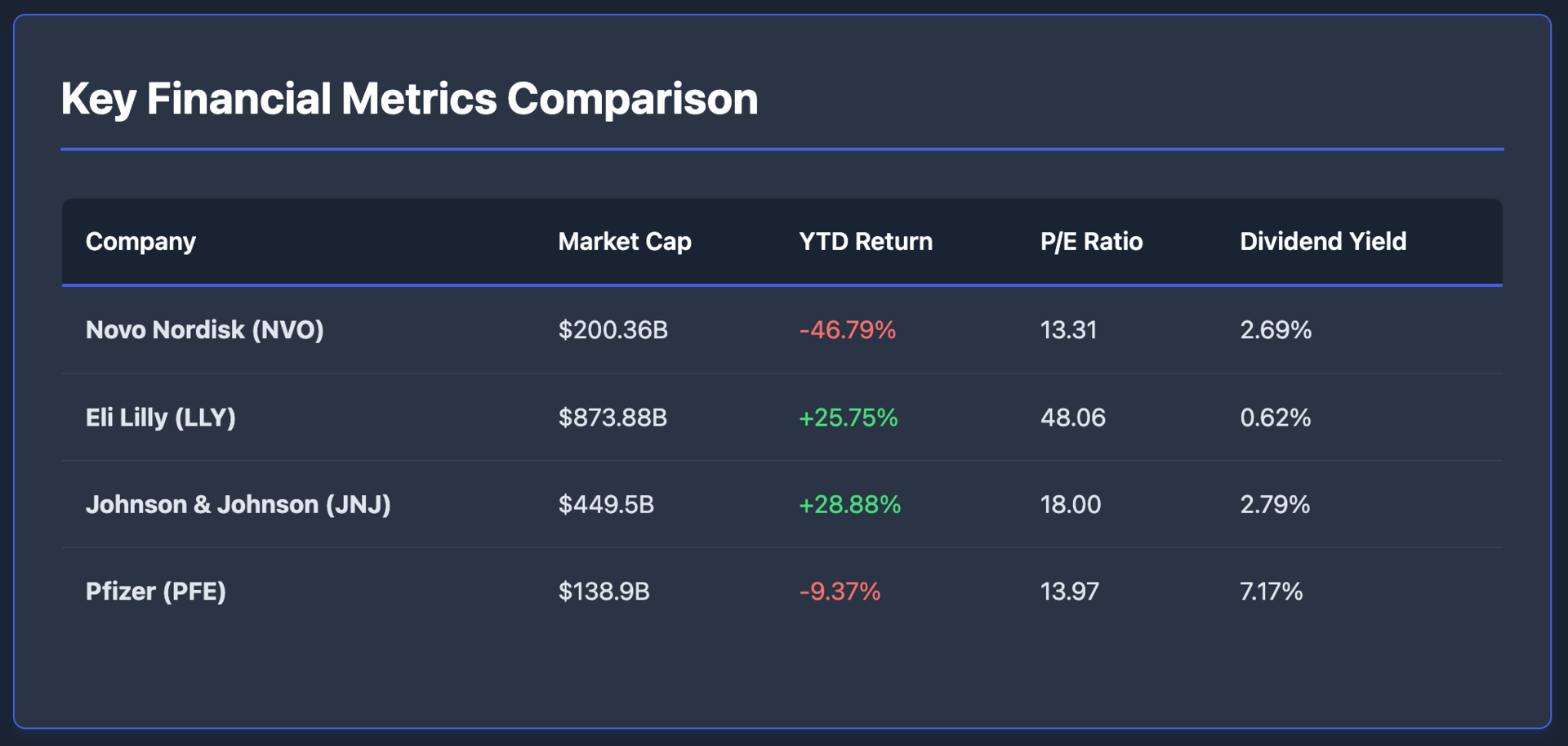 Novo Nordisk $NVO and Eli Lilly $LLY face direct exposure through their diabetes portfolios, while Johnson & Johnson $JNJ and Pfizer $PFE confront pricing pressure on key revenue drivers.