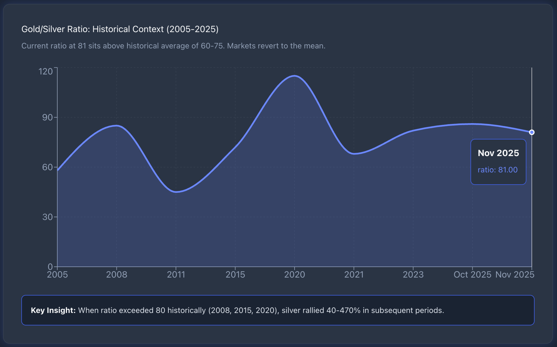 When it decisively breaks below 80, silver typically begins outperforming gold. That inflection point signals tactical opportunity.