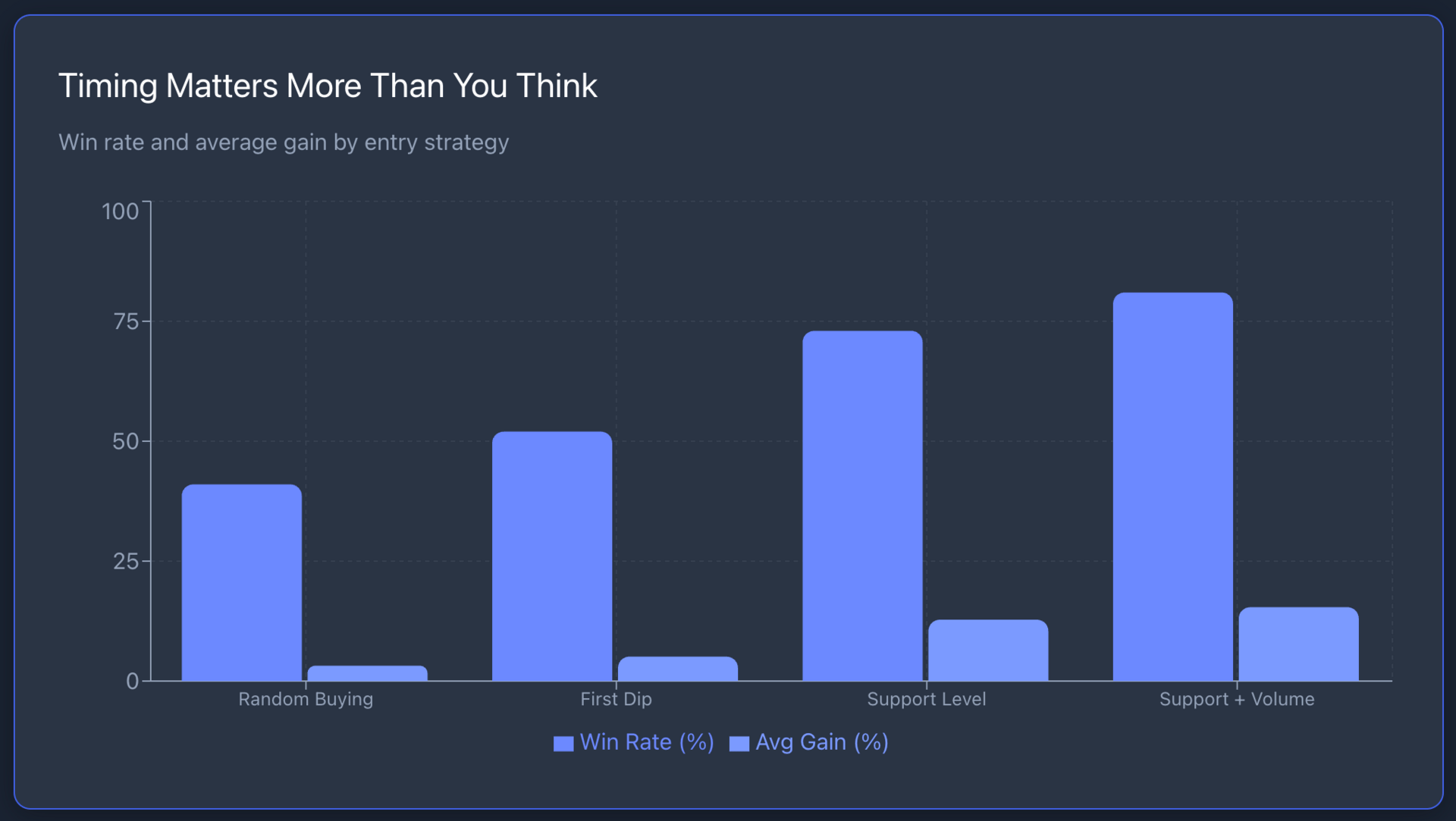 Most investors lose money trying to "buy the dip" because they're guessing at entry points instead of analyzing them.