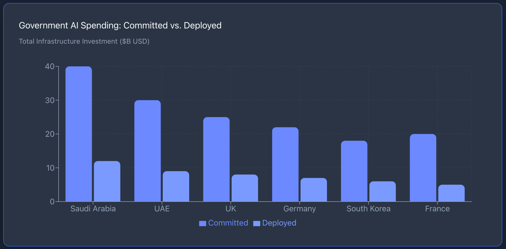 The spending is real. Saudi Arabia alone has committed billions. Europe is allocating substantial public and private capital.