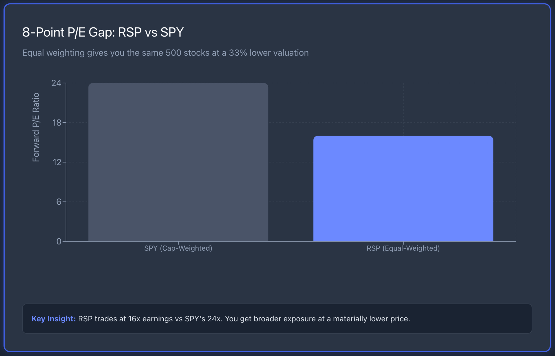 Lower P/E. Broader exposure. Reduced concentration risk. That's the trade.