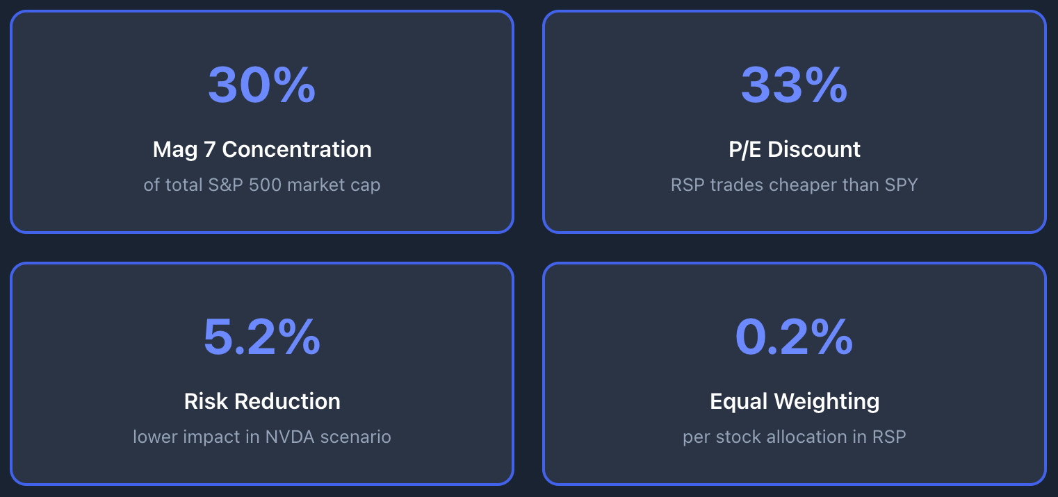 RSP isn't trying to beat the market. It's trying to give you actual diversification, the kind that cap-weighted indices used to provide before concentration reached current levels.
